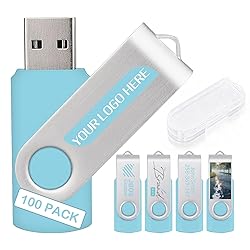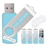 100 Pack Custom USB Flash Drives 128MB USB 2.0,Bulk Personalized Thumb Drives with Logo for Business, Events, Text or Image Printing, JBOS Customized Memory Sticks-Light Blue