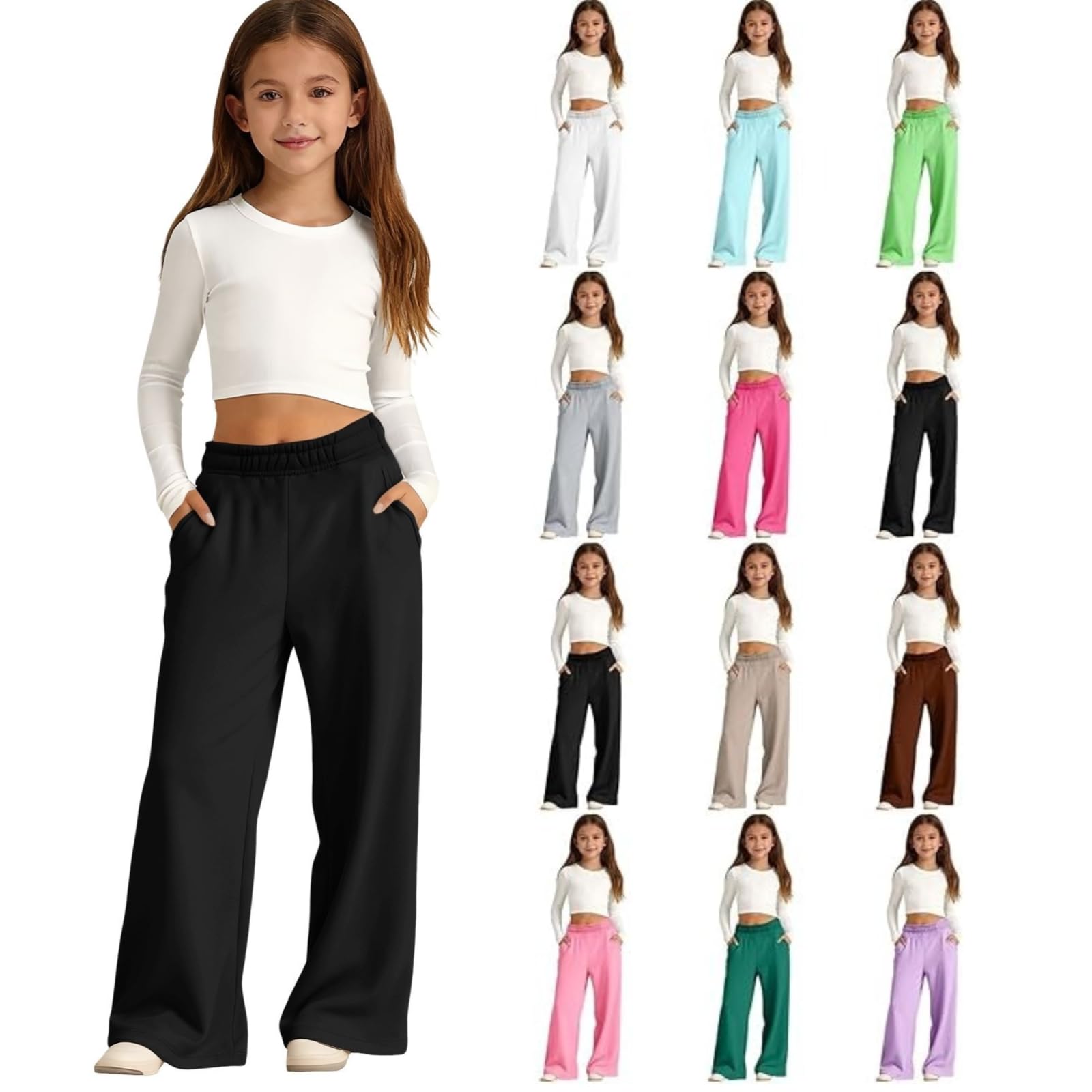 Girls Wide Leg Jeans Casual Baggy Pants for Girl Cute Soild Teens Straight Pant Y2k Trousers Fall Winter Streetwear 7-16Y