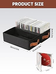【SET OF 4, HOLDS UP TO 80 CDs】Each organizer holds up to 20 standard-size jewel CD cases — that’s a total of 80 CDs with this 4-pack set! These CD organizers are perfect for keeping your collection neat and accessible. With a large capacity, you can store all your discs in one place, avoiding clutter, damage, or loss. Keep your collection safe and organized! 【FOLDABLE DESIGN】This foldable CD storage box is a breeze to assemble or disassemble — it takes just a minute! Even better, when not in use, it folds flat for compact storage. A smart space-saving solution that’s ready whenever you need it. 【VERSATILE STORAGE】More than just for CDs! This CD storage case also works great for cassette tape storage, storing towels, clothes, office supplies, and other small items. Use it in the closet for clothes or in drawers to keep things tidy and accessible. It’s the ideal organizer for any room. 【DURABLE & FUNCTIONAL】Crafted from high-quality, durable fabric with a sturdy internal PP board and convenient handle, these CD organizers are built to last. They're easy to carry, practical, and stylish — offering the perfect blend of function and design for everyday use. 【SAVES SPACE, LOOKS GREAT】Each box measures 28 cm (11 in) L × 15 cm (5.9 in) W × 8 cm (3.2 in) H. The sleek, compact design helps you maximize your space while keeping things organized. These CD case holders are not just practical — they also add a touch of style to your home décor. Enjoy your favorite music in a clutter-free environment!