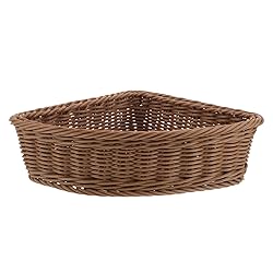 - Description Maximize your home’s storage potential with this corner storage basket, featuring a distinctive fan-shaped triangular design that fits snugly into wardrobe corners, closet spaces, or shelves. This innovative sundries organizer bin offers a secure solution for bathroom cosmetics or snack storage, keeping your essentials tidy and enhancing any room’s aesthetic. Features -Color:Light Brown -Material:Plastic, metal -Size:32.50X24.50X8.50cm/12.77X9.63X3.34in -Space maximization solution: the corner storage basket seamlessly fits into wardrobe organiser baskets, utilizing every inch of your wardrobe or room corners  -Stable and secure storage: designed in a triangular storage basket shape, this sundries organizer basket firmly sits against walls, preventing wobbling and ensuring your sundries stay safe and organized -Effortless access: the snack storage organizer bin features open structure, allowing you to easily grab snacks, cosmetics, or clothing from your shelf basket and eliminating corner clutter - durability: crafted from sturdy material, the handwoven storage container offers strong weight capacity and use, making it ideal for bathroom baskets, kitchen, and wardrobe storage -Aesthetic and functional: the decorative organizer bin organizers blend with diverse home styles, adding a neat and modern touch to your shelves storage bins while keeping your essentials organized