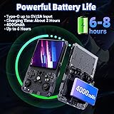 High-performance R36MAX Handheld Game Console: The R36max is a high-performance cost-effective retro video game console that follows the R36S. The 1.5GHz 64-bit RK3326 processor ensures smooth gameplay, easily handling large 2D and some 3D games. The stable Linux system minimizes crashes, allowing for a seamless and immersive gaming experience Massive Game Library & 64GB Storage: Dive into instant nostalgia with the R36Max! This R36Max handheld game console comes loaded with thousands of iconic games – from action and puzzles to epic adventures. It supports over 30 emulators and has a large 64GB TF card for the vast game library—no internet required Crisp 4.0-Inch IPS HD Display: This retro gaming console is equipped with 720*720 resolution 4.0-inch IPS fully laminated screen, providing clear picture quality and better eye protection. It ensures that nothing goes wrong at different angles. Meanwhile dual 3D joysticks give you a better gaming experience Portable Design with 4000mAh Battery: This R36MAX game console takes you back to a filled with laughter and surprises. 4000mAh Battery with portable design, it delivers up to 6 hours of playtime, take your games anywhere, relish unint. Brings lots of joy and happiness to you during a trip or a long journey Perfect Gift for All Ages: This R36MAX handheld emulator is an ideal present for family and friends on birthdays, Christmas, New Year etc. The interactive entertainment of the game competition brings more laughter and happiness to the whole family