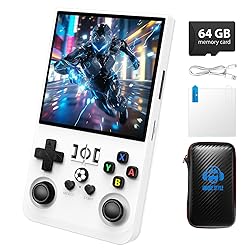 【R36MAX New Retro Game System】The R36 MAX is a high-performance retro video game console, equipped with a 1.5GHz 64-bit RK3326 CPU and Linux system with a ARM64bit quad-core Cortex-A35 CPU. It offers a smooth and responsive gaming experience across a variety of emulators. 【64GB Storage + Expandable Memory】Enjoy plug-and-play convenience with 64GB of built-in storage for a vast game library—no internet required. Expandable via TF card for unlimited retro game collections. 【4.0-Inch HD Visual Experience】Features a vibrant 4.0-inch IPS screen with scratch-resistant tempered glass and 720×720 resolution. Showcases crisp graphics, true-to-life colors, and reduced eye strain for immersive battles and detailed visuals. 【Portable Design with 10-Hour Battery】Ultra-lightweight and travel-friendly, powered by a 4000mAh rechargeable battery for up to 10 hours of gameplay. Includes built-in speakers and a 3.5mm headphone jack for rich audio on the go. 【Perfect All-Ages Entertainment Gift】Relive nostalgic joy and unwind from daily stress. Ideal for gamers of any age, it sparks laughter, surprise, and hours of relaxing fun—making it a thoughtful, crowd-pleasing present.
