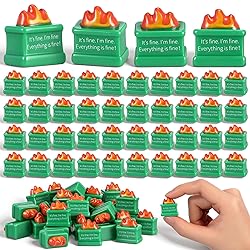Quantity Satisfaction: this office desk accessories package houses a bountiful set of 50 resin dumpster figurine gifts, the ideal bulk set for outfitting your workspace, sharing with office peers, or gifting to your team; This resin dumpster trash shape ornament collection ensures you'll have plentiful pieces for giving to friends, family, team, employees, staff, or coworkers; The dumpster desk accessories can also serve as charming decor spread across your space, making every corner meaningful Resin Material: Each positive office dumpster ornament gift is masterfully crafted from quality resin that is sure to stand the test of time; The mini resin dumpster, which is waterproof and not easy to fade, is sturdy and reliable. the lightweight enough to move easily between spaces. Brimming with hilarity and charm, these pun decorated items are memorable and can bring smiles while reducing stress, allowing you to swap them out whenever needed or share with family and friends Ideal size: Measuring 0.98 x 0.79 x 0.55 inch/ 2.5 x 2 x 1.4 cm, their compact size makes them cool things for my office that fit neatly on desks, shelves, or even as subtle decor in cubicles. Their small, portable design also lets you tuck one into a bag Motivational Design: designed to look like mini burning dumpsters with the encouraging phrase 'It's fine; I'm fine; Everything is fine! ' engraved on them. the office trash can ornament for employee flame on each piece serves as a motivational symbol, reminding you to burn away all your worries and transform an adverse situation into an opportunity for growth. Your corporate office colleagues, family and friends will love the resin dumpster trash shape desk accessories Meaningful Thank You Gift: our emotional office appreciation gifts have meaningful designs, which can express gratitude to people, and are suitable as holiday thank you gifts, birthday gifts, party gifts, graduation gifts, event souvenirs. Use them as party favors for office gatherings, tokens of thanks at team milestones, or small treats for holiday celebrations, etc., to give to volunteers, employees, medical staff, coworkers, team or your friends and family