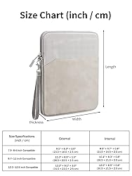 COMPATIBLE SIZE OPTIONS (INNER DIMENSIONS) Designed for 10–11 Inch devices. Compatible with most iPad, tablet computers, e-readers and drawing tablets.Please choose the correct size according to the inner dimensions below:10–11 Inch:10.43 × 8.27 in (26.5 × 21.0 cm) SPLASH-RESISTANT & MOISTURE PROTECTION:Made of high-quality splash-resistant fabric, effectively protects your device from accidental splashes, light rain and moisture. Not fully waterproof. Suitable for daily use, commuting and travel. EXTRA STORAGE POCKET & SMOOTH ZIPPER Includes an extra side pocket for storing phone, earphones, flash drive, stylus, pencil and small accessories. Top-loading smooth zipper ensures easy and quick access to your tablet or e-reader. 360° SHOCK ABSORPTION PROTECTION Built-in thickened sponge padding provides reliable protection against accidental drops, bumps and impacts, helping keep your device safe during everyday use. 1 × Tablet sleeve case, and friendly customer service. Tablet, cables, stylus, pencil, adapters, power bank and other accessories are NOT included.