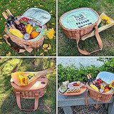 What You will Get - This is not a simple classic picnic basket, it’s a complete picnic set with everything for outdoor picnic date on the go: 1 hand woven wicker picnic basket with strong canvas handle + 1 little size solid wood handmade foldable picnic table + 1 large insulated cooler bag + 2 sets cutlery service kits ,Including 2 X Stainless steel tableware (knife, fork and spoon), 2 X plastic wine glasses, 1 X waiter style bottle opener, 1 X salt & pepper shaker. Perfect Picnic Addition - Lightweight but Strong Solid Wood Wine Picnic Table: This is a super cute and pretty sturdy mini table with 2 wine glass holders, very convenient to use it on uneven ground, beach, grasses. You will love it. Table top size L:16.9" x W:13" x T:0.6", Table height 4.9” , It’s a must-have for picnics, outdoor concerts, camping, swimming pools, boats, beaches or indoor beds. Captures Essence of Classic Picnic - Meanwhile Very Practical: Built- In large Insulated Cooler Bag, keep your food and drinks fresh/cool. Notice: it’s not 100% waterproof, pls go with reusable ice packs,not ice cubes.The inside lining is made of aluminum and sponge composition, surface is easy to clean. Natural Handmade & Sturdy Construction - Made of selected high quality willow + solid wood + heavy duty hardware + many years experienced workers, our picnic basket is strong and durable for long time use. This picnic basket set will make your picnic experience so much better! You need this! It’s so nice and very useful! Perfect Gift - Our picnic basket set goes with gift wrapping ribbons. Hap Tim Picnic basket makes an ideal present for wedding gifts, bride gifts,anniversary gift for couple, engagement gifts for women, bride to be gifts for her, mr and mrs gifts, anniversary gift for husband, newlywed gift & anniversary gifts for parents. Our picnic basket makes it easy for couples to enjoy picnics all year round.