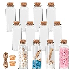 40 ml Small Glass Bottles with Cork, 12 Pack Mini Bottles with Twine & EXTRA Cork Stoppers, Small Vials with Lids, Tiny Glass Bottles, Mini Potion Bottles, Message in a Bottle for Theme Party, Sand