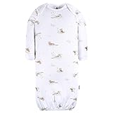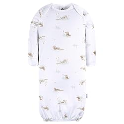 Includes four gowns Made from 100% soft cotton to be gentle on sensitive skin and easy on healing belly buttons Open bottom design for easy diaper changes and optimal air circulation Integrated mitten cuffs keep tiny hands warm and prevent accidental scratches Otter themed gown pack