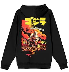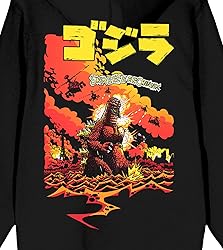 Custom Design: Showcases red kanji on the front and a rampaging poster on the back under yellow kanji, capturing iconic monster action Hood: Comes with an adjustable hood for a personalized fit and added coverage Officially Licensed: Genuine Godzilla merchandise, ensuring true fan apparel High-quality Materials: Made with a 60% cotton and 40% polyester fleece blend for lasting comfort and wear Kangaroo Pocket: Provides functional front storage for convenience and style